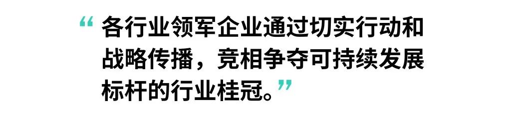 如今,一场围绕可持续发展的隐形竞赛正在商业环境中上演。各行业领军企业通过行动和战略传播,争夺可持续发展标杆。以下是几个典型领域的标杆对决: