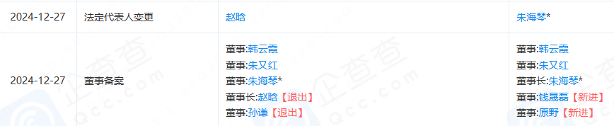 企查查显示,2024年12月底,云海肴董事会调整,赵晗不再担任董事长等职务,朱海琴出任董事长兼CEO,全面负责公司决策和管理。
