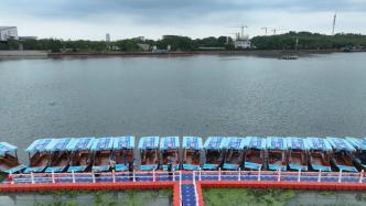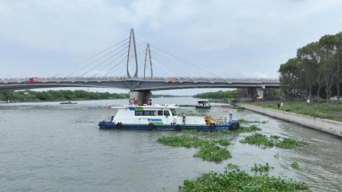 临近赛前,区水务局制定了赛事开幕式专项计划,从船只调度、末端处置、后勤保障、人员时间安排等方面提升应急保障能力。在现有9条船只的基础上增加7条自动化打捞船只,根据航道、浅滩等区域特点合理部署专业打捞力量;结合水葫芦下泄情况,利用赛事封航的有利条件,对浦港路大桥、汾湖大桥等区域进行阶梯式打捞力量配置,上下游联动保障方厅水院的环境。