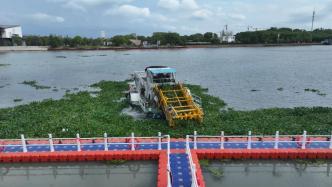与往年不同,此次提前开展“水葫芦攻坚战”,在太浦河方厅水院上游的汾湖大桥、浦港路大桥和汾湖水域设置了3道拦截防线,采用拦捞结合的方式,控制水葫芦下泄数量。三地密切合作,日均清除量接近千吨,有效降低了水葫芦对太浦河水域生态的威胁。