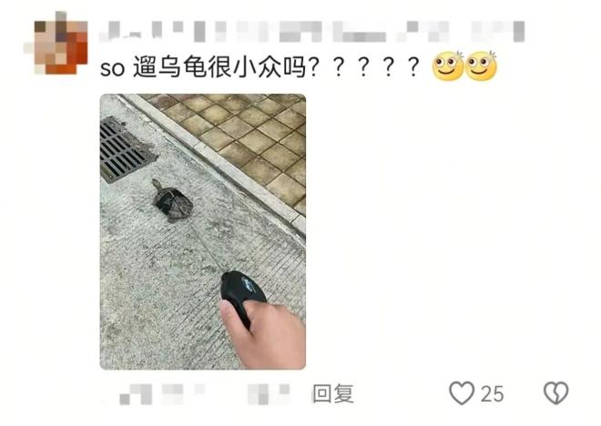 还有小龟,穿着小铠甲,系着牵引绳,这是它的专属遛弯装备。不禁让人想问,小龟需要这么大的运动量吗?小龟仿佛在说:“跟着我的节奏一起摇摆~”