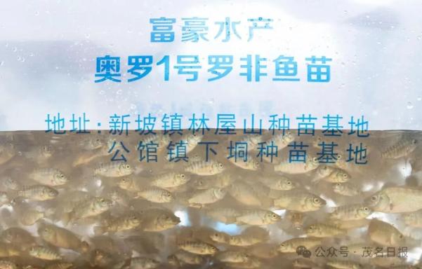 富豪水产于2016年从中国淡水科学研究中心引进罗非鱼亲本进行杂交培育出“奥罗1号”罗非鱼,该公司以“用心氧好鱼,养出健康鱼”为核心理念,前后建立了水产基地两百余亩,荣获省级水产健康养殖和生态养殖示范区、茂名市茂南区罗非鱼产业园、水产苗种产地检疫示范点等荣誉。