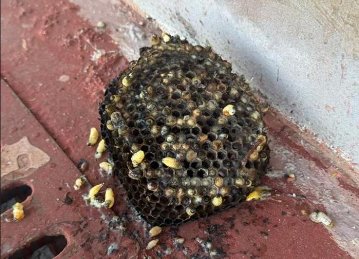 阿消提示,秋季是蜂类繁殖、筑巢的高峰期。当发现蜂类筑巢,如果尚处于初期,只有零星几只,可使用杀虫剂驱赶;如果蜂窝已成型,千万别贸然处置,可向专业人士寻求帮助。
