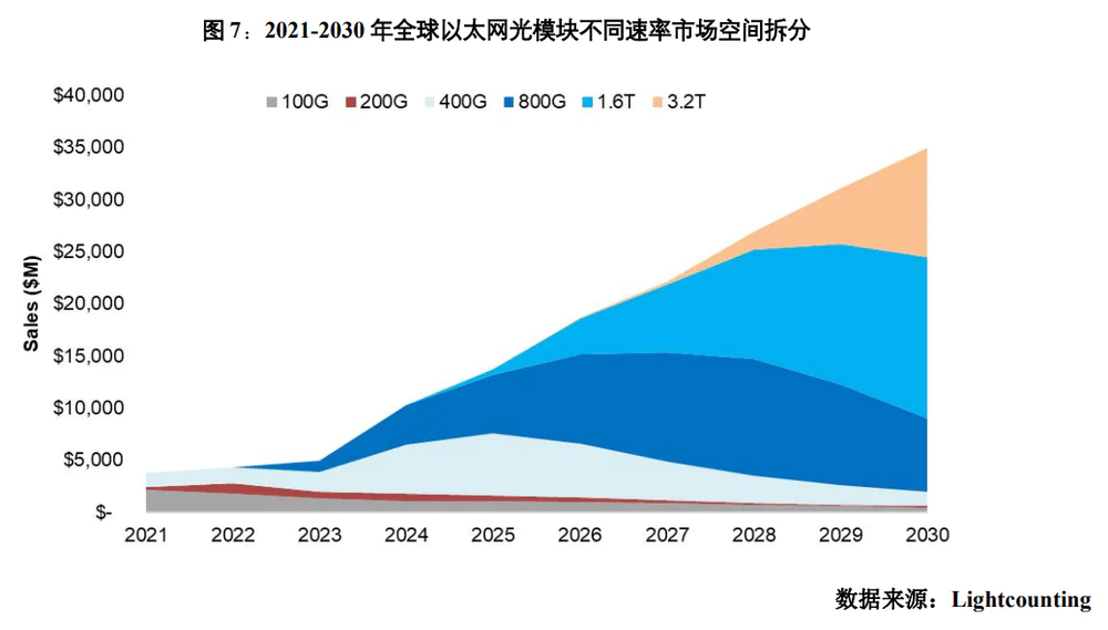 根据Lightcounting预测,2026年800G和1.6T光模块将快速增长,预计2030年800G和1.6T以太网光模块的市场规模将超过220亿美元。