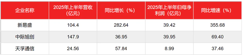 2025年上半年,中际旭创的光模块销量为905万只,同比增长45.96%;新易盛的光模块销量为695万只,同比增长112.53%。