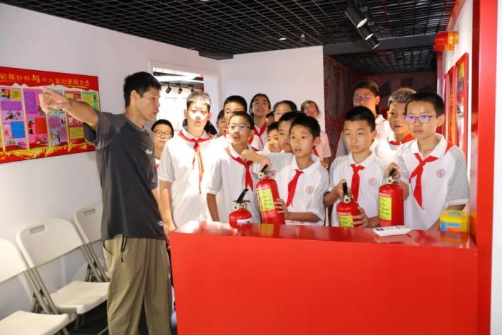 随后,在学校的“长宁区中小学安全教育基地”,六年级学生开启了沉浸式民防课程实践体验。在国动办老师的带领讲解下,学生前往地下民防馆参观,进行模拟地震体验、消防灭火、打逃生结、急救操作等实操,巩固应急技能,掌握了避险自救能力。