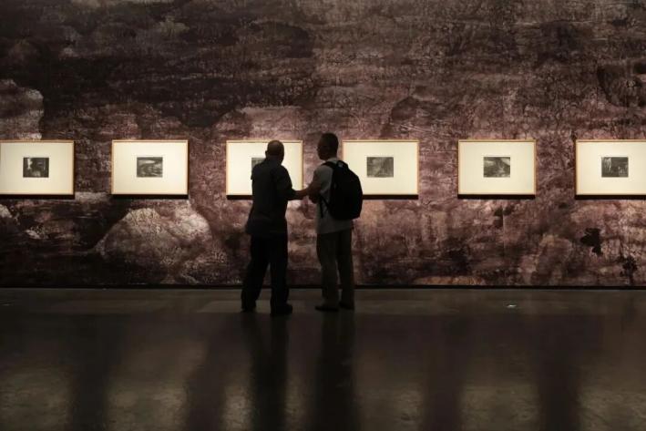 步入展厅,《驼峰岁月》《往事不如烟——太行山兵工厂》等作品映入眼帘。它们以黑金交织的色调和雄浑笔触,生动展现出历史的厚重与自然的神秘。这些画作栩栩如生,观众站在画前,仿佛能真切感受到画布上流动着的强烈生命力。