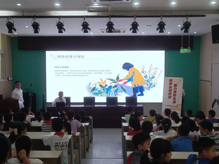 在颐和佳苑小学金牛路校区,老师向同学们宣传网络安全知识。