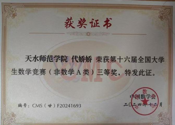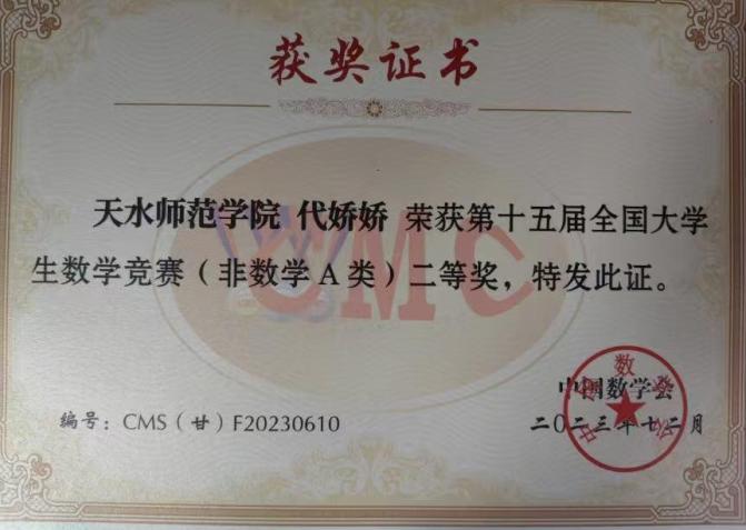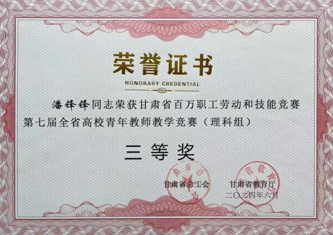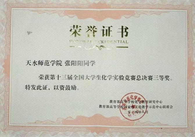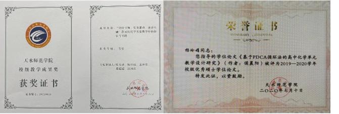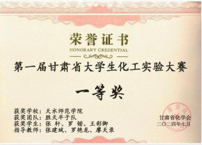 化学专业以人才培养为根本,以教学工作为中心,不断深化教育教学改革,完善人才培养方案,创新人才培养模式,人才培养质量显著提高。学生在各类比赛中成绩优异,在第十届甘肃省化学竞赛中,十人参赛十人获奖,其中2名学生获一等奖,4名学生获二等奖,4名学生获三等奖,本专业代表队获团体三等奖;1人荣获全国大学生化学实验大赛三等奖;获第十三届“挑战杯” 甘肃省大学生课外学术科技作品竞赛二等奖1项;获第四届全国大学生化工实验大赛西北赛区决赛一等奖1项。近五年,化学专业学生考研率位居全校第一。