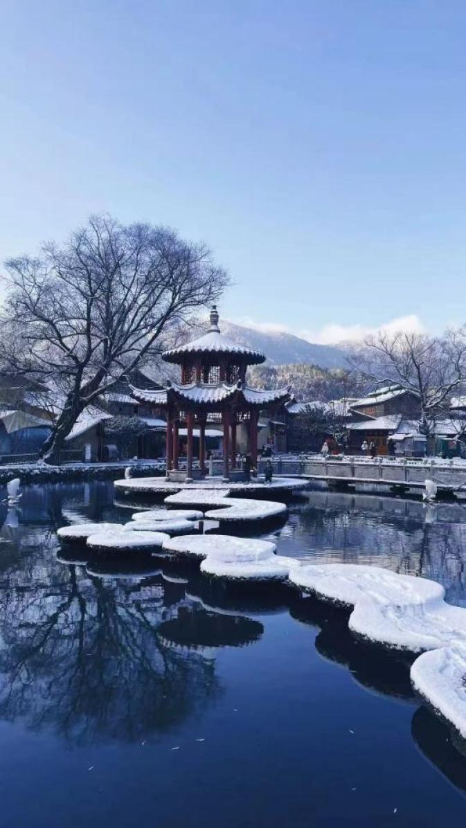 故乡的冬季,虽没有北方的严寒,但一场雪的降临,能将整个世界装点得如梦如幻。当雪花纷纷飘落,古亭、池塘、屋舍都被披上了一层洁白的盛装。