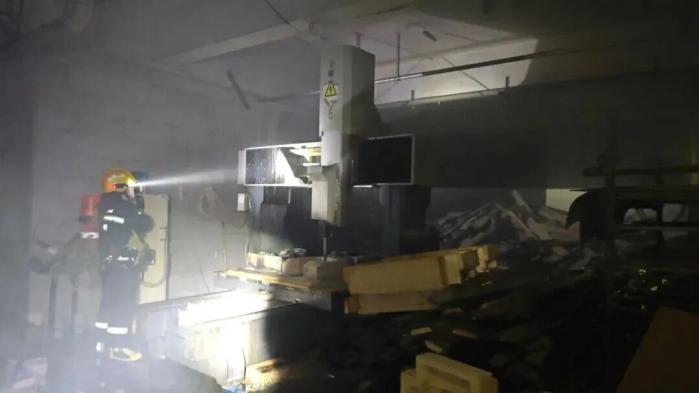 近日,温州市龙湾区瑶溪街道的一家木制品加工企业厂房内,一台设备突然起火。接到报警后,消防员迅速赶赴现场救援。