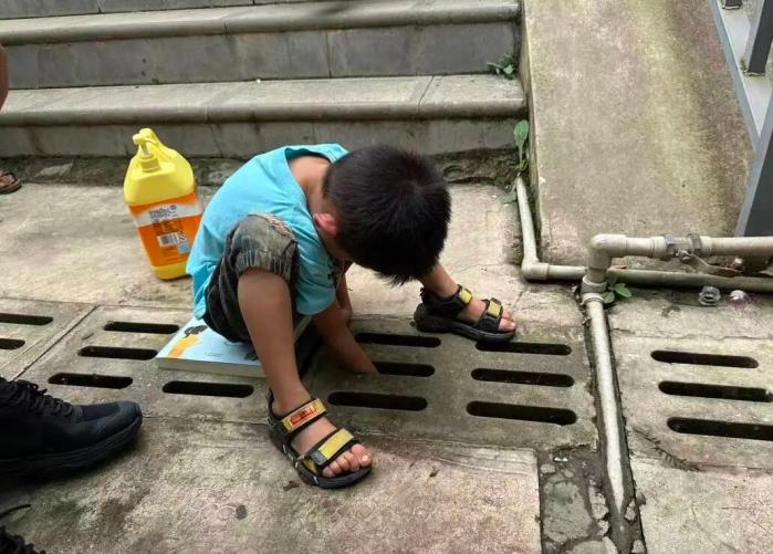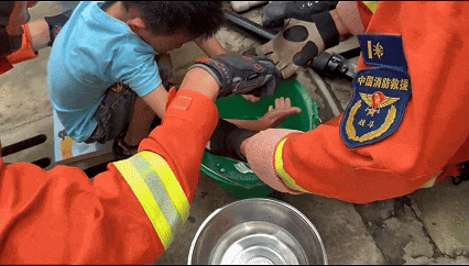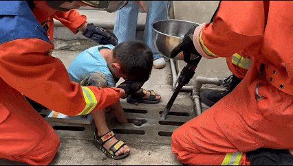男孩捡橡皮擦时手被卡在下水道,消防紧急救援