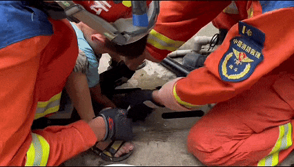 消防救援人员还让男孩动动手,查看情况:“手这样动一下,我看看。”拆除过程中,队员们全神贯注,时刻关注孩子状况,避免破拆后的碎屑伤到孩子。