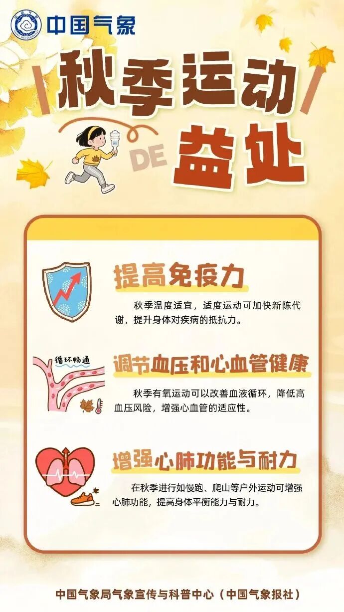 虽然江苏目前还未正式进入气象意义上的秋天,但天气已逐渐凉爽,秋意渐浓。科学研究表明,秋季运动对身心有诸多益处,是时候通过运动来唤醒身体啦!