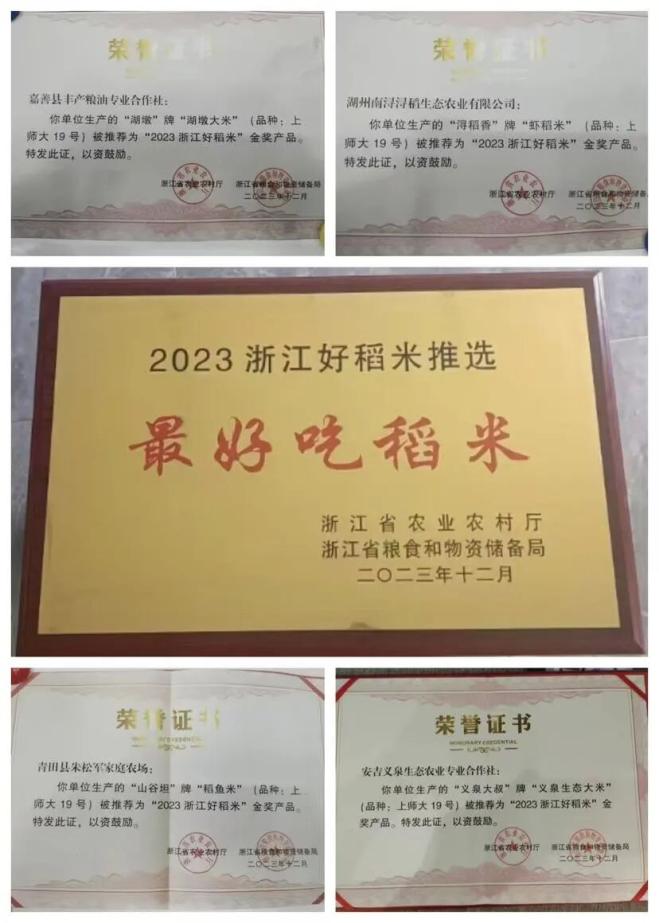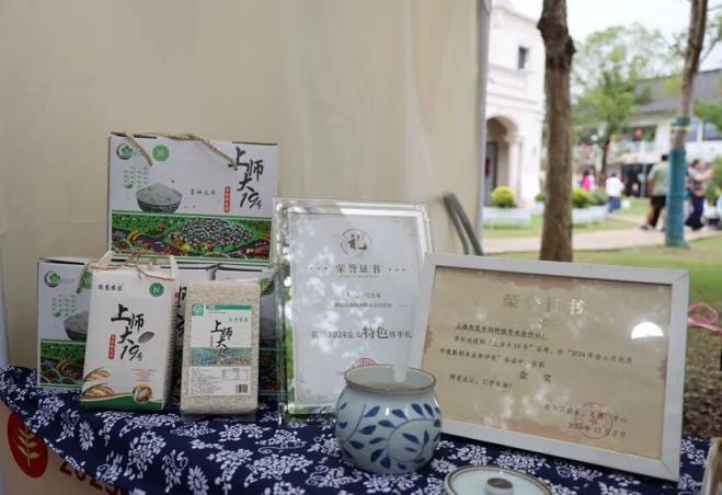 现场工作人员介绍,“上师大19号”大米是上海师范大学生命科学学院李建粤教授团队多年选育的成果,由尚慧水稻合作社的严秋云进行规模化种植,并经过八年精心培育。“‘上师大19号’不仅抗逆性强,而且米质软糯香甜,冷饭回热也不会发硬。它在2023年浙江好稻米评比中斩获五项金奖中的四项,还在长三角优质稻米评鉴中获得金奖,是从金山走向全国的明星稻种!”