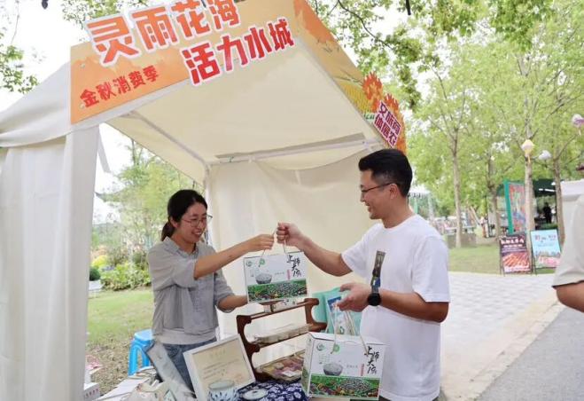 秋分时节,天高云淡,朱泾镇的花开海上生态园热闹非凡,丰收节嘉年华正在这里热烈举行。在朱泾镇特色农产品展区,一袋袋米粒细长、晶莹剔透的“上师大19号”大米,以及一盒盒造型独特、寓意美好的“稻香糯语”米糕,成了众多游客驻足品尝、竞相购买的热门商品。