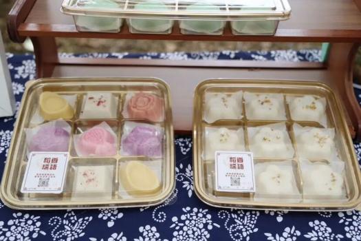 与传统米糕相比,“稻香糯语”米糕在馅料上大胆创新,除了传统的豆沙、枣泥馅,还增加了芋泥、乳酪、南瓜泥、蔓越莓等年轻人喜爱的口味,并且不添加白砂糖或传统猪油,口感更加丰富自然。