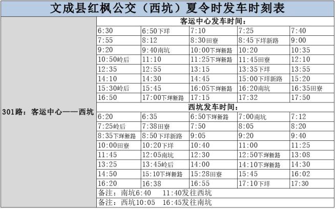 同时,从9月22日起,文成县域内公交班车启用冬令时运营时刻表,具体安排如下: