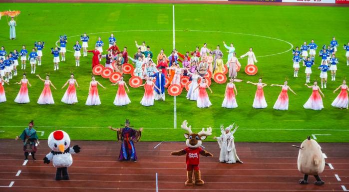 东台青年艺术家们精心编排和演绎的暖场及中场演出,犹如一幅徐徐展开的唯美画卷。实力、颜值、青春活力兼具的“董永传说”在绿茵场上铺陈开来。