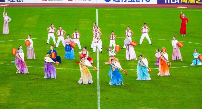 除了球员们,场上还有另外一支队伍,同样是为了对城市的热爱,为了心中的热忱。他们为远道而来的球迷们带来了精彩的暖场表演与中场演出,也为现场和荧幕前的观众献上了一场震撼的东台文化视听盛宴。