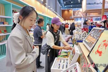 此次文博会展览面积约2.4万平方米。甘肃文旅非遗文创展区把甘肃各地的非遗技艺与现代创意相结合,精美的剪纸、绚丽的洮砚、灵动的庆阳香包等展品让人看不过来,充分展现了传统文化的魅力。