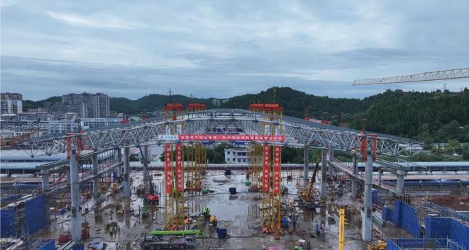 9月19日,新建成都至达州至万州高速铁路(以下简称:成达万高铁)遂宁站北站房主体工程顺利完工,站房工程进入装饰装修施工阶段,为成达万高铁按期通车奠定了坚实基础。