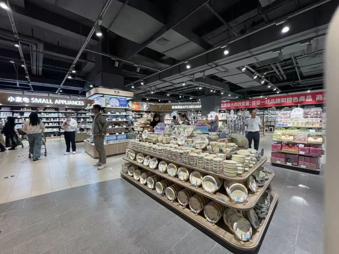 非生鲜商品更具时尚感,雅诚德迪斯尼IP陶瓷系列、网红小马宝莉文创系列、轻奢地板拖系列,以及胖东来主推的萃乐活、安野屋、梦妆等网红品牌全面在售。日化区也焕然一新,秋冬换季商品已全面更新。