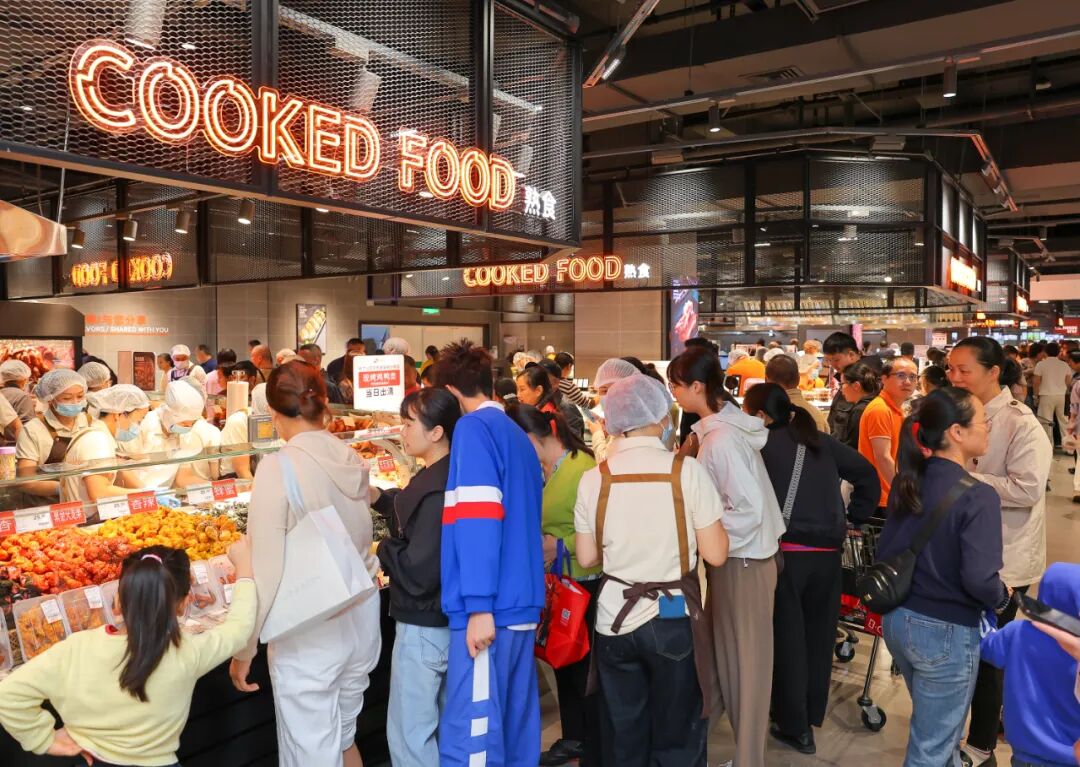 烘焙、熟食、面点等现场加工板块,不仅增添了卖场的烟火气和体验感,还采用明厨亮灶的方式,让消费者能看到现场加工的每一个环节,买得更加放心。