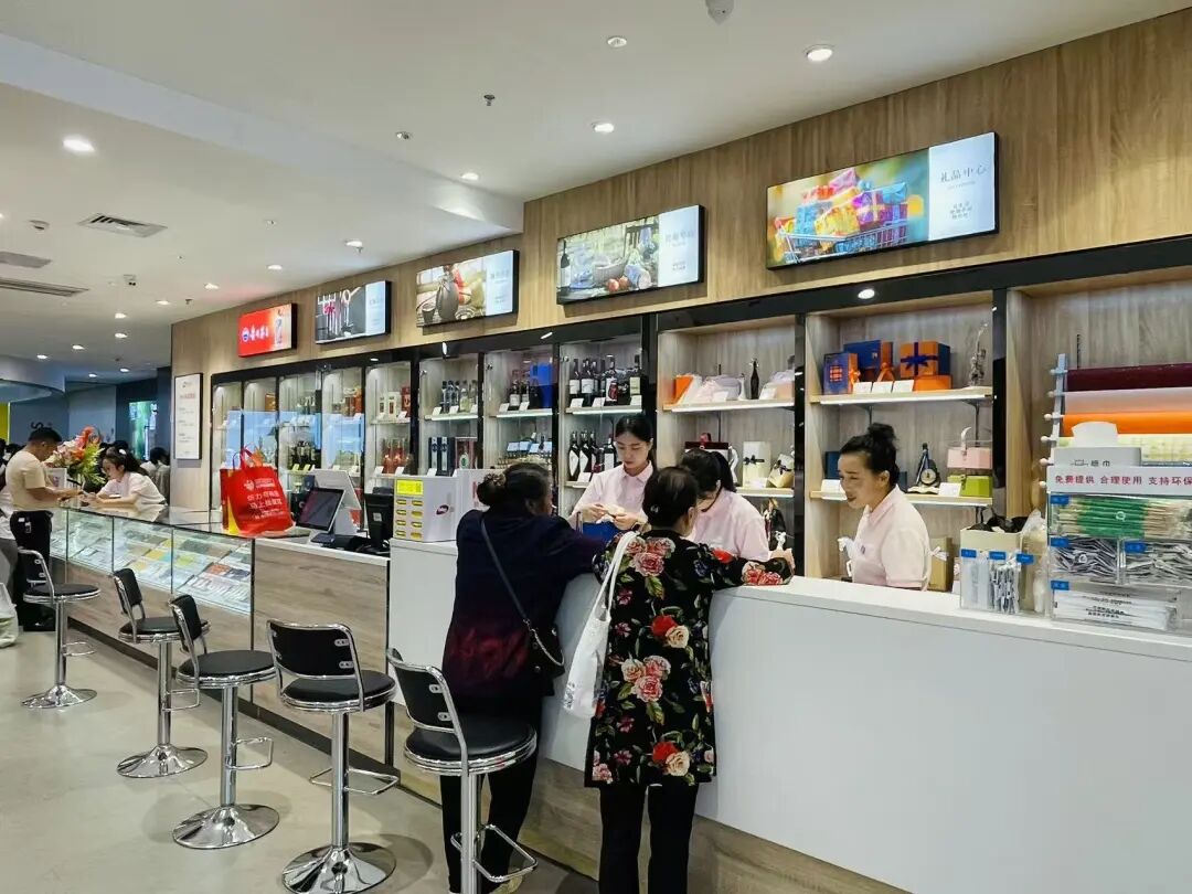 针对散装食品,清晰标注“每斤约几颗”,解决了顾客选择时的焦虑问题。店内还设置了试穿拖鞋的专用鞋套、试穿鞋凳,以及易碎品打包处、海鲜打包加冰处等,充分满足顾客在购物过程中的多样需求。