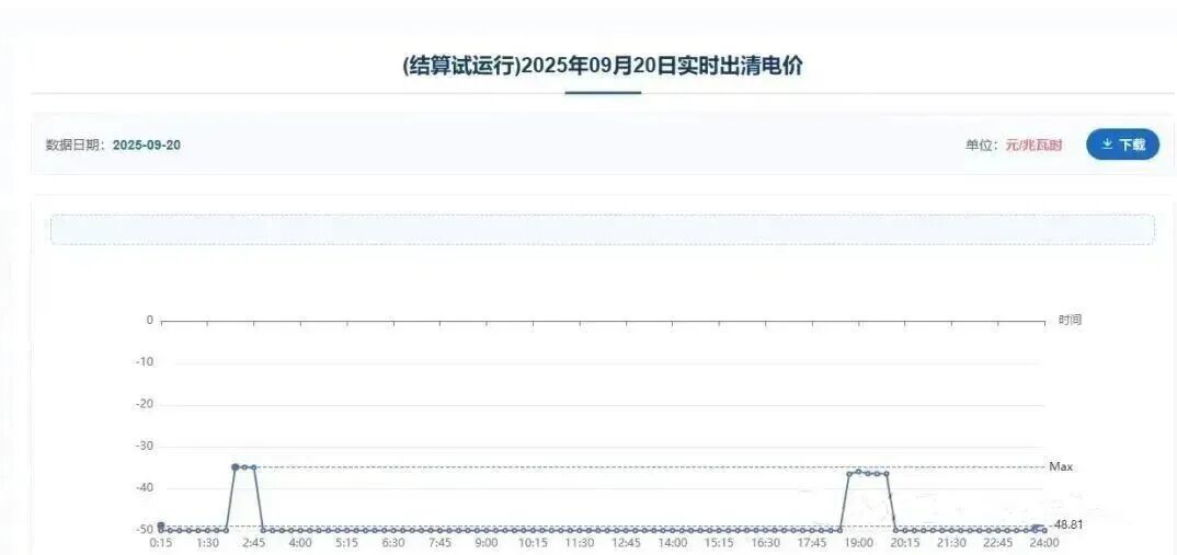 2025年9月20日,四川电力现货结算试运行时惊现全天负电价,最高达 -34.87元/MWh,最低至 -50元/MWh。