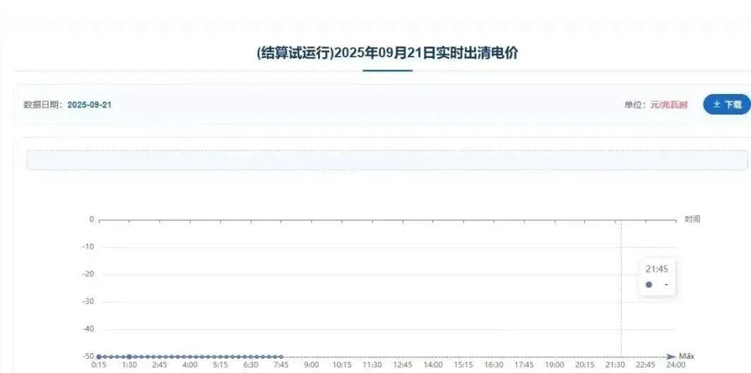 截至9月21日7:45,这一罕见负电价仍维持在 -50元/MWh。