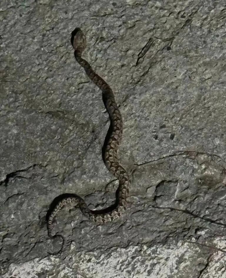 近日,在重庆巫山县福田镇,欧先生与女友陈女士在公路边散步时,突然感到脚部一阵刺痛。打开手电才发现,一条小指粗、筷子长度的小蛇咬穿了他的夹板拖鞋。