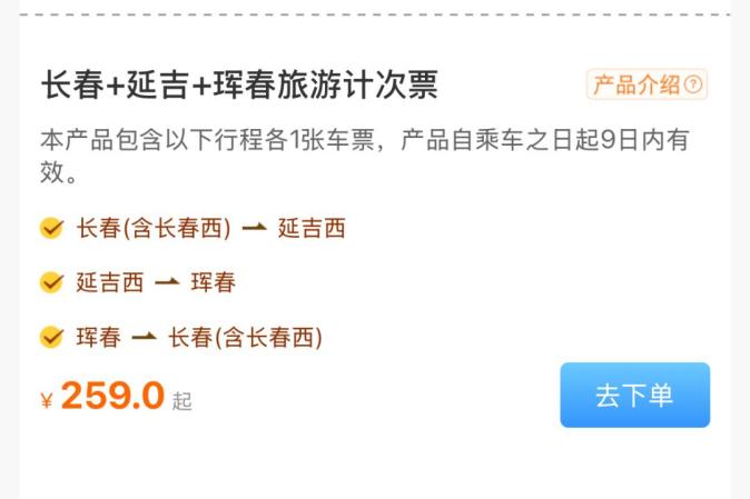 为满足旅客出行需求,2023年4月1日,长珲高铁推出旅游“计次票”产品,旅客凭票可畅游长春、延吉、珲春等地。