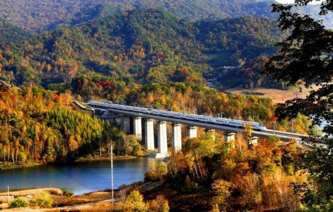 高铁串起一路美景。作为“东北最美高铁”,长珲高铁途经松花湖、拉法山、红叶谷等众多国家自然保护区。列车一年四季驰骋在美景之中。