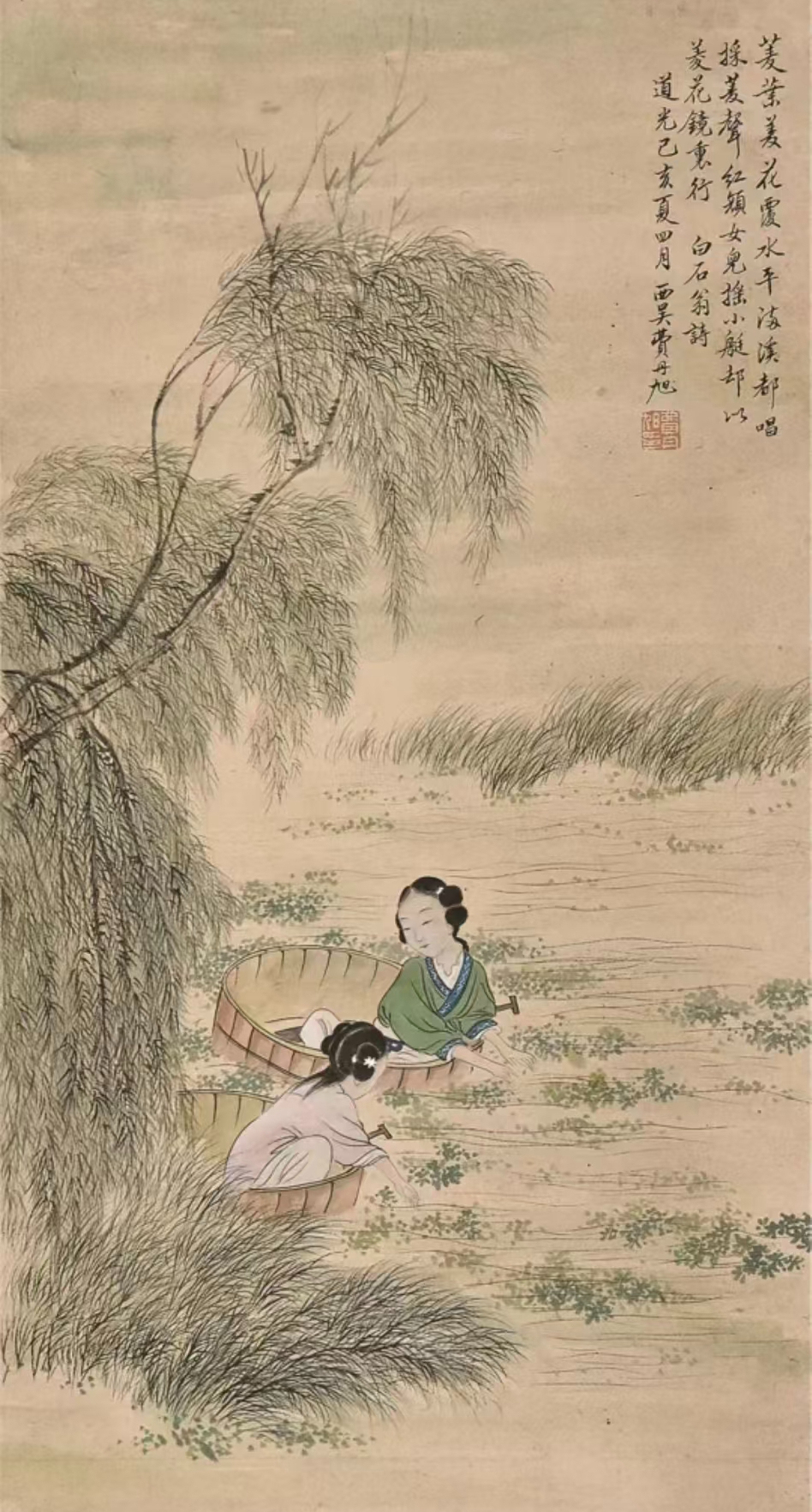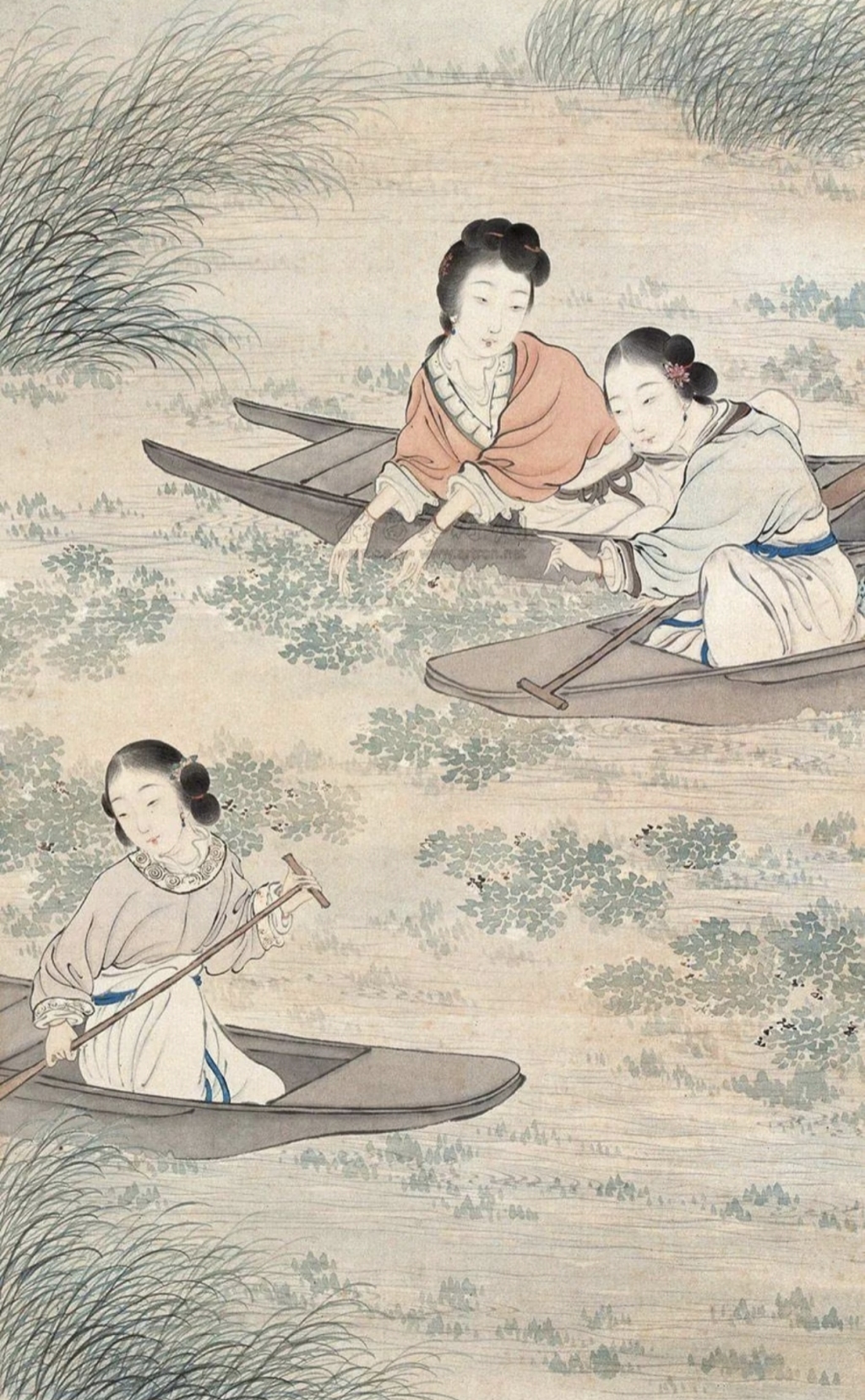 清代画中的采菱女子