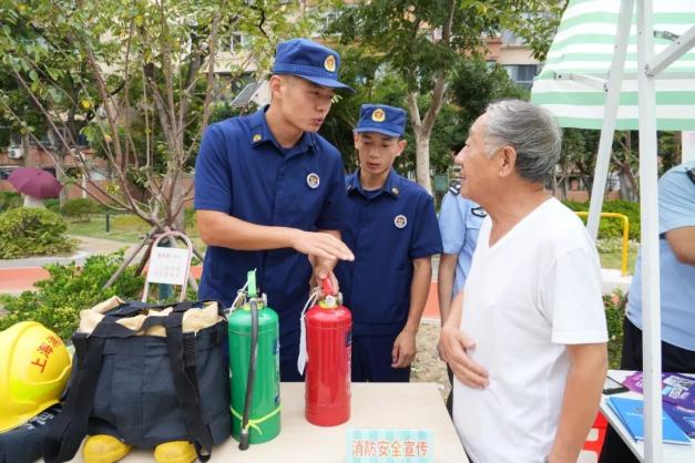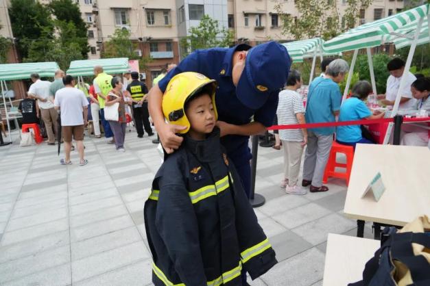 消防安全宣传区的“硬核”体验吸引众多居民围观。消防员提醒:“遇到火灾先摸门把温度,温度高千万别开门!”还现场演示30秒内快速穿脱消防服:“先穿裤子,再套上衣,最后戴头盔!”