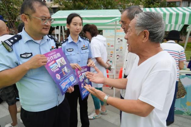 反诈宣传区同样干货十足。上海银行工作人员通过展板展示、案例分析,讲解“冒充公检法”“保健品诈骗”等常见套路,普及防范措施。社区民警教居民安装反诈APP,现场设置有奖问答环节,居民参与热情高涨。