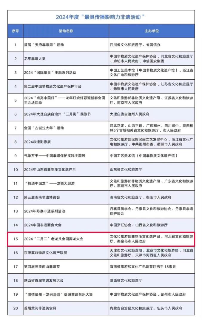 原标题:《秦皇岛这项活动入选!2024年度“最具传播影响力非遗活动”榜单发布》
