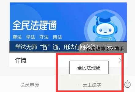 登录方式:①关注法治视野微信公众号;②点击【云上法学】菜单进入“全民法理通”。
