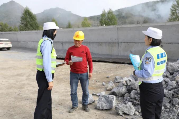 秋收双节,长白交警送“安全礼包”到工地,护航务工人员出行