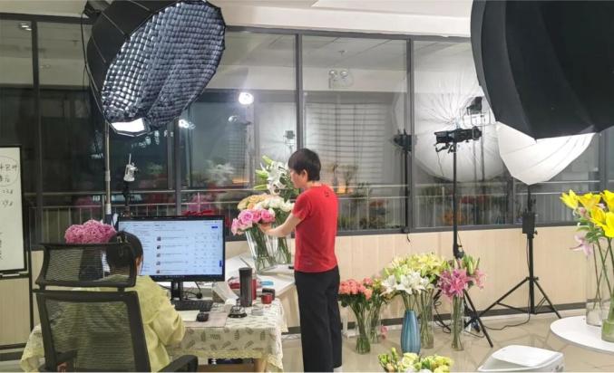 鲜切玫瑰在“云端”的热销,离不开新区商务和市场监管局的积极推动。