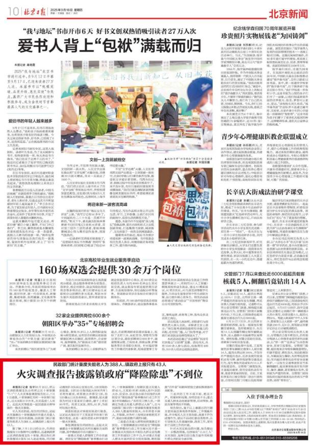 9月18日,北京日报报道《火灾调查报告披露镇政府“降险除患”不到位》。9月16日,密云区消防救援支队公布密云区十里堡镇“7·1”亡人火灾事故调查报告。7月1日凌晨,十里堡镇红光村一平房客厅起火,过火面积8平方米,造成1人死亡。该起事故是因遗留火种导致的一般火灾事故。