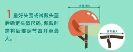 1. 佩戴头盔前,要先量好头围或者试戴,确定合适的尺寸,同时将头盔后部的调节器开至最大。