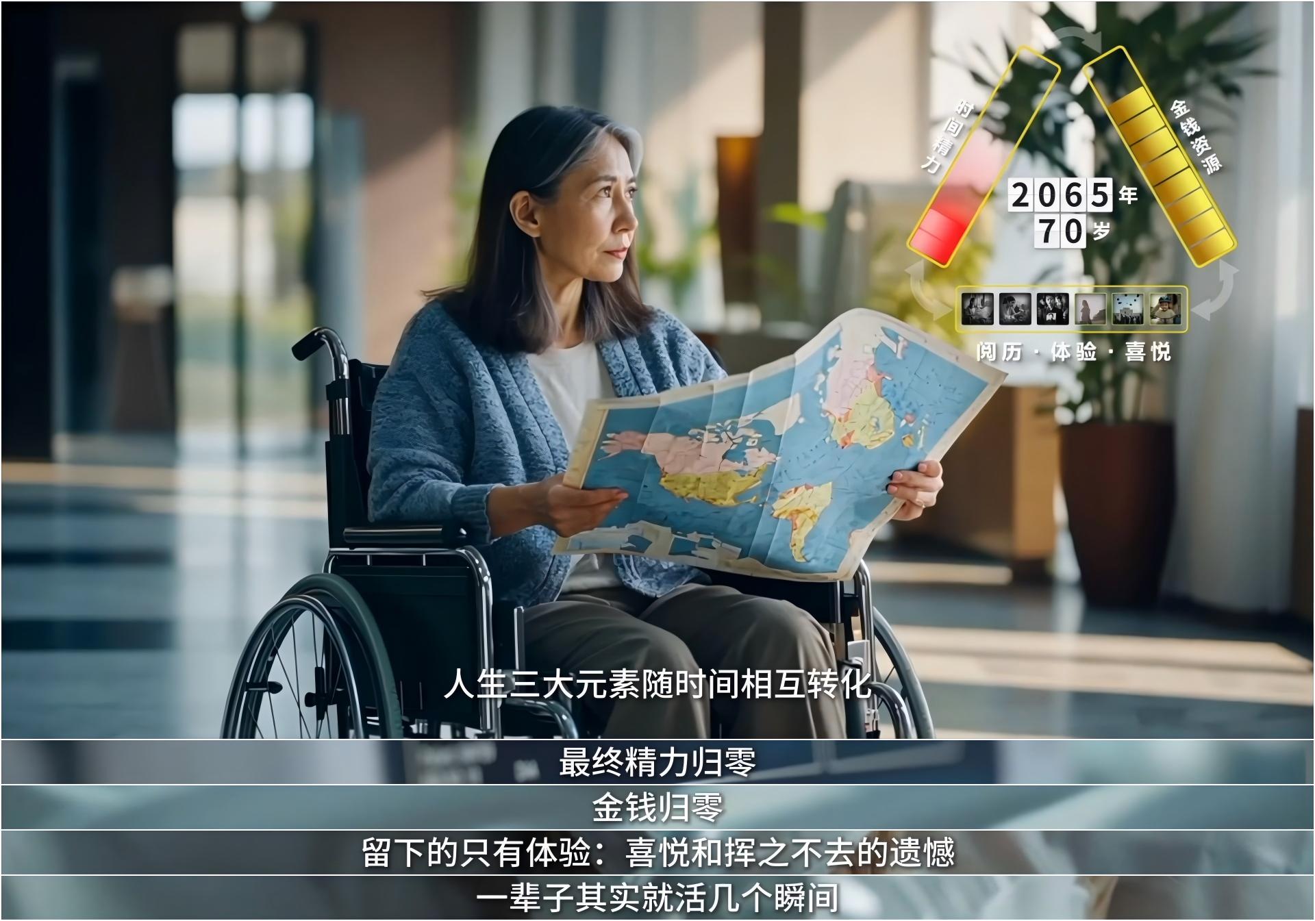 人生中,精力、金钱、时间相互转化。有人用精力换金钱,有人花钱买时间,有人用精力换体验,有人花钱买快乐,也有人牺牲快乐换钱。但到人生终点,前两者归零,留下的只有体验,一辈子或许就活几个瞬间。
