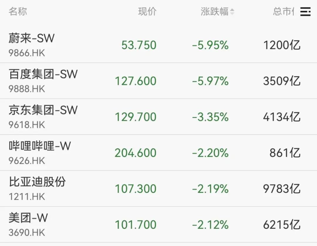 港股方面,三大指数震荡调整,蔚来、百度均跌超5%,京东集团跌超3%。