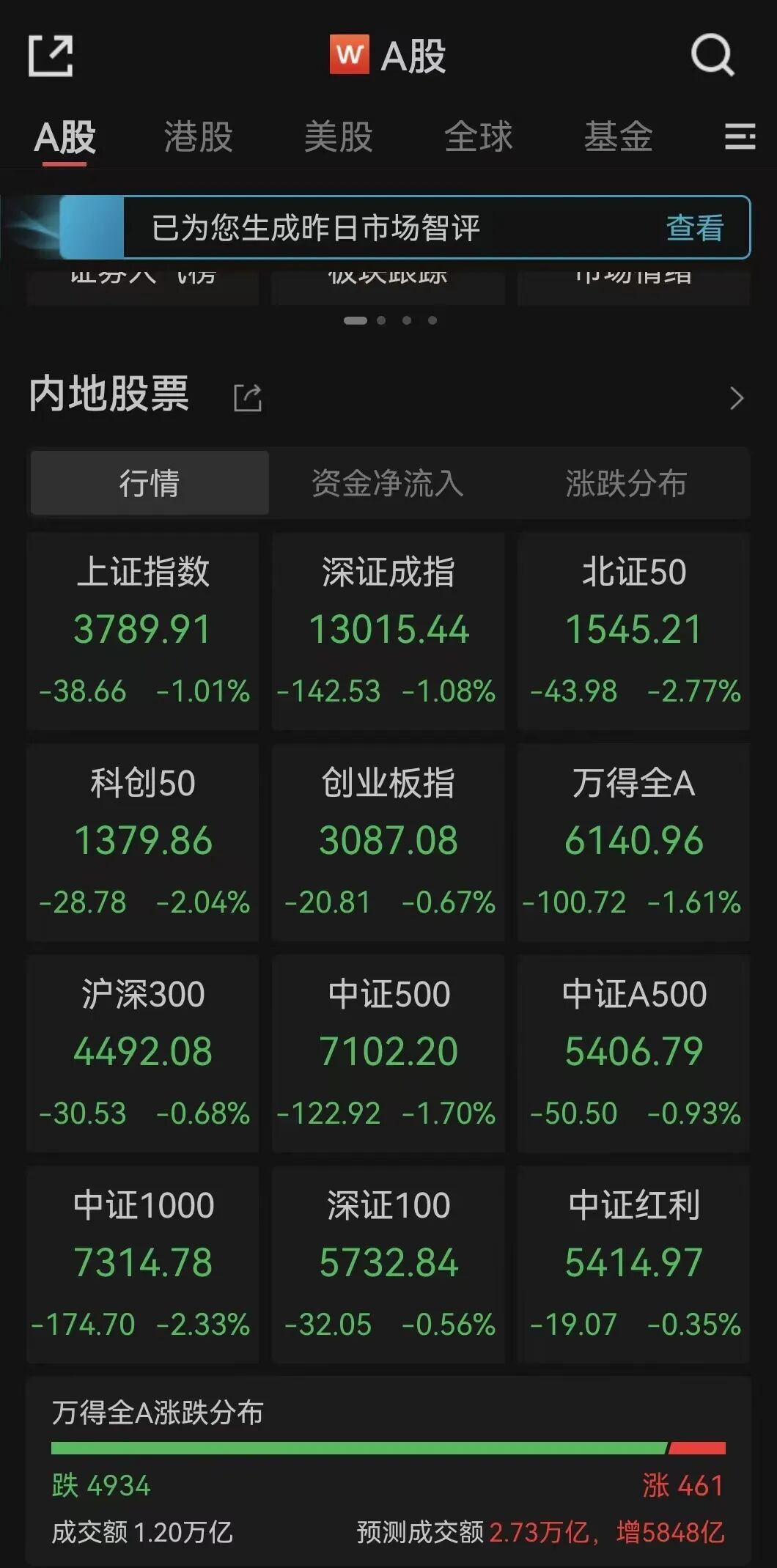 股市全线下跌,超4900只股票飘绿