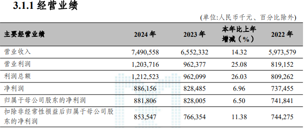 2024年,富滇银行营收74.9亿元,同比增14.32%;净利润8.86亿元,同比增6.96%,营收和净利润连续三年增长。