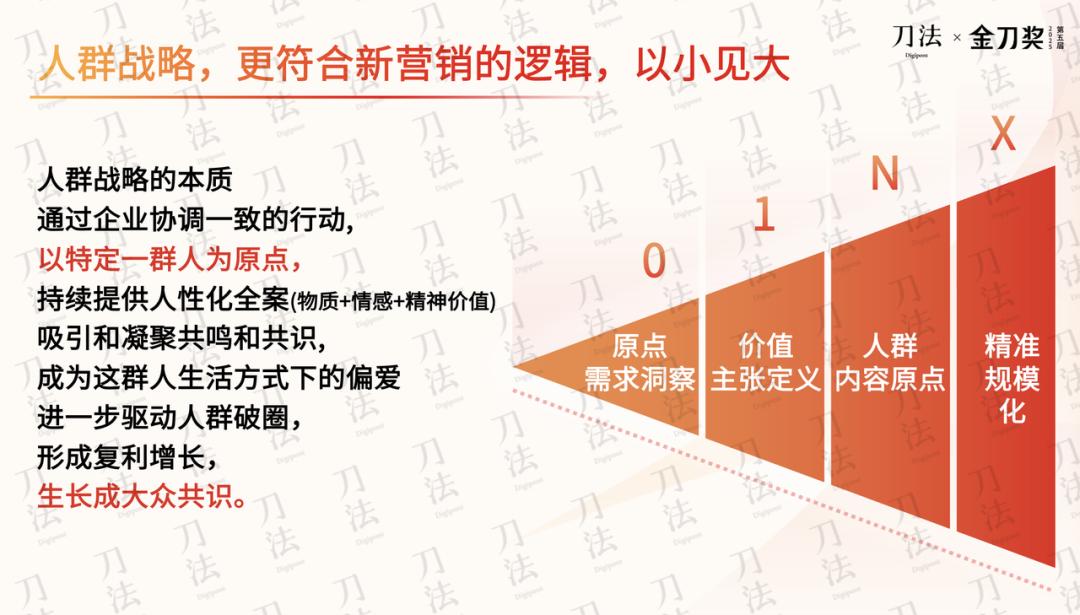 以上这个模型,是著名的小红书反漏斗,但背后还有很多演绎方式,也是我们刀法人群战略的关键工具,它能帮助我们定义不同人群,并分层经营——在我们的刀法智库账号有更多阐释。