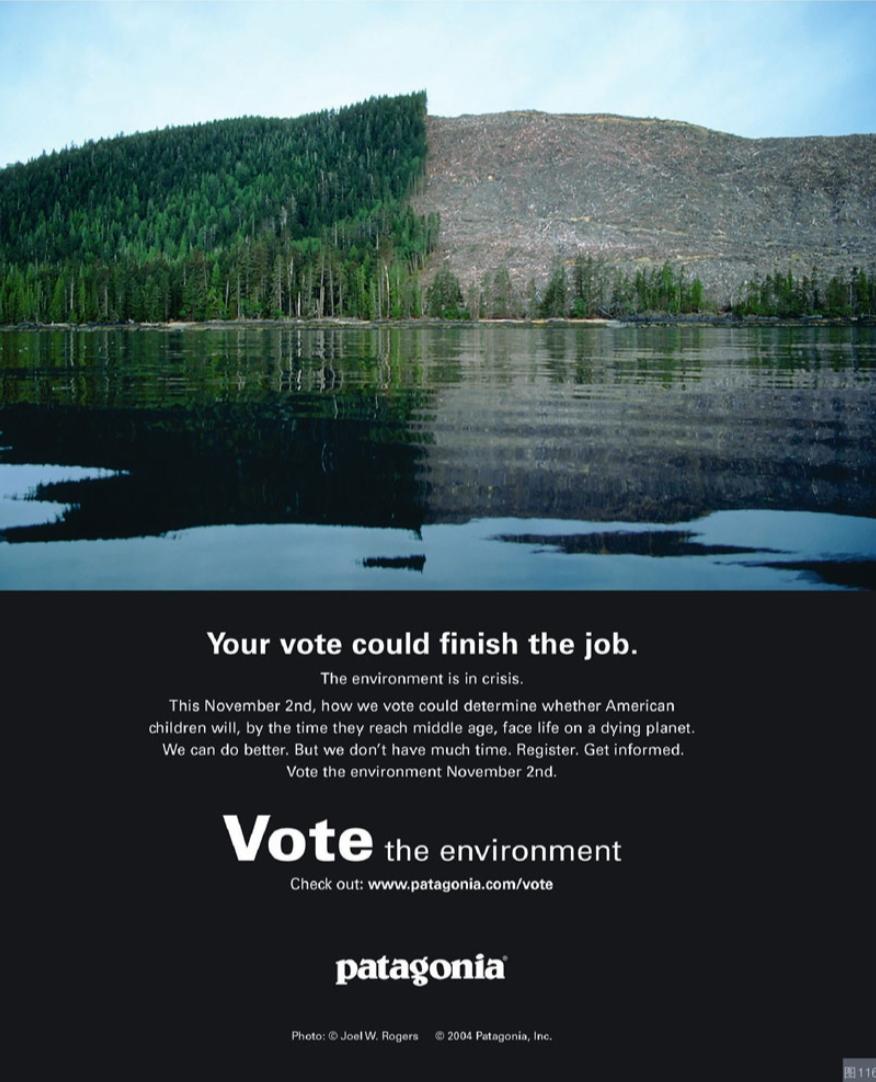 2012年总统竞选时,Patagonia的‘为环境投票’广告
