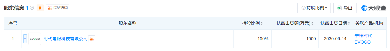 该公司由时代电服科技有限公司全资持股,而时代电服科技有限公司是宁德时代新能源科技股份有限公司的全资子公司。